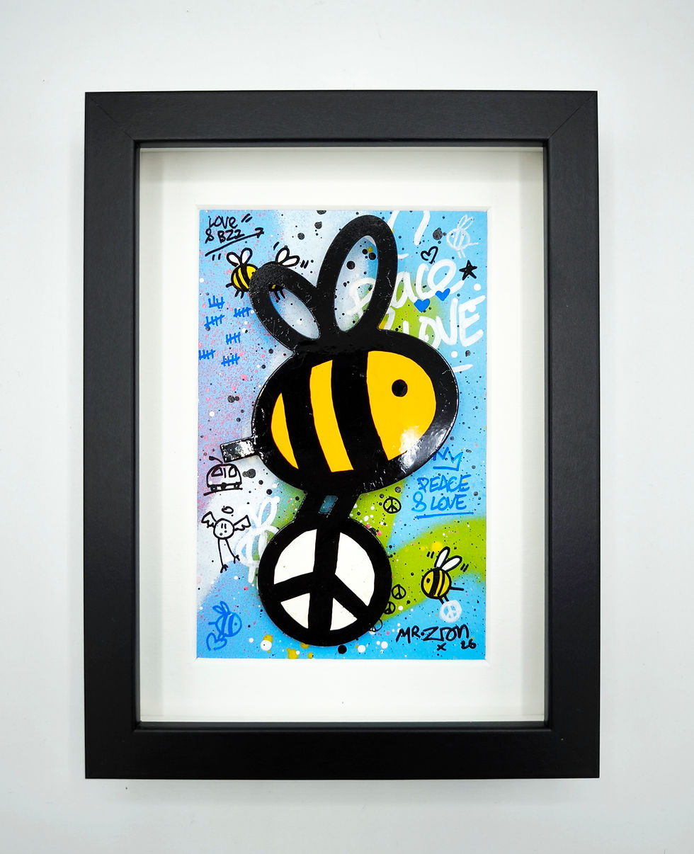 Chaque Zabeille est unique : découpée au laser, peinte à la main, disponible en toutes tailles et formes. En version encadrée, elle semble flotter dans votre intérieur, parfois parée de mes calligraphies. Une touche originale et vibrante qui transforme votre espace et capte tous les regards