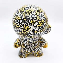 Ainsi, j’habille des barils devenus sculptures urbaines pour un restaurant, des sneakers transformées en créations singulières pour une jeune marque, des figurines Kidrobot ou encore des vases qui se muent en supports d’expression. Chaque objet est pensé comme une surface à révéler, un terrain de dialogue entre lignes, courbes et volumes.